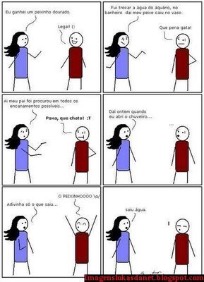 O cara liga pra casa numa tarde pra saber o que a esposa ia fazer para o jantar. - Alô? diz uma vozinha de criança. - Oi, querida, é o papai. Mamãe esta perto do telefone? - Não, papai. Ela esta lá em cima no quarto com o tio Frank. Após alguns segundos, o cara diz: - Mas querida, você não tem um tio chamado Frank!!! - Sim, eu tenho! E ele esta lá em cima no quarto com a mamãe. - Tá bom, então. Quero que você faça o seguinte: suba correndo as escadas, bata na porta do quarto e grite pra mamãe e pro tio Frank que o meu carro acabou de parar na frente de casa. - Tá legal papai! Alguns minutos depois, volta a garota: - Eu fiz o que você disse. - E o que aconteceu? - Bem, mamãe pulou da cama pelada e começou a correr pelo quarto gritando, aí ela tropeçou no tapete e caiu pela janela da frente, e está morta... - Oh, meu Deus!!! e o tio Frank??? - Ele pulou da cama pelado também, muito assustado, a í pulou pela janela do fundo pra dentro da piscina, mas ele deve ter esquecido que você esvaziou a piscina na semana passada prá limpar, e aí ele bateu a cabeça no fundo dela, e agora esta lá, morto também... Uma longa pausa e o cara diz: - Piscina??? Por acaso o telefone aí é 3212-0739? - Não - Desculpe, foi engano!